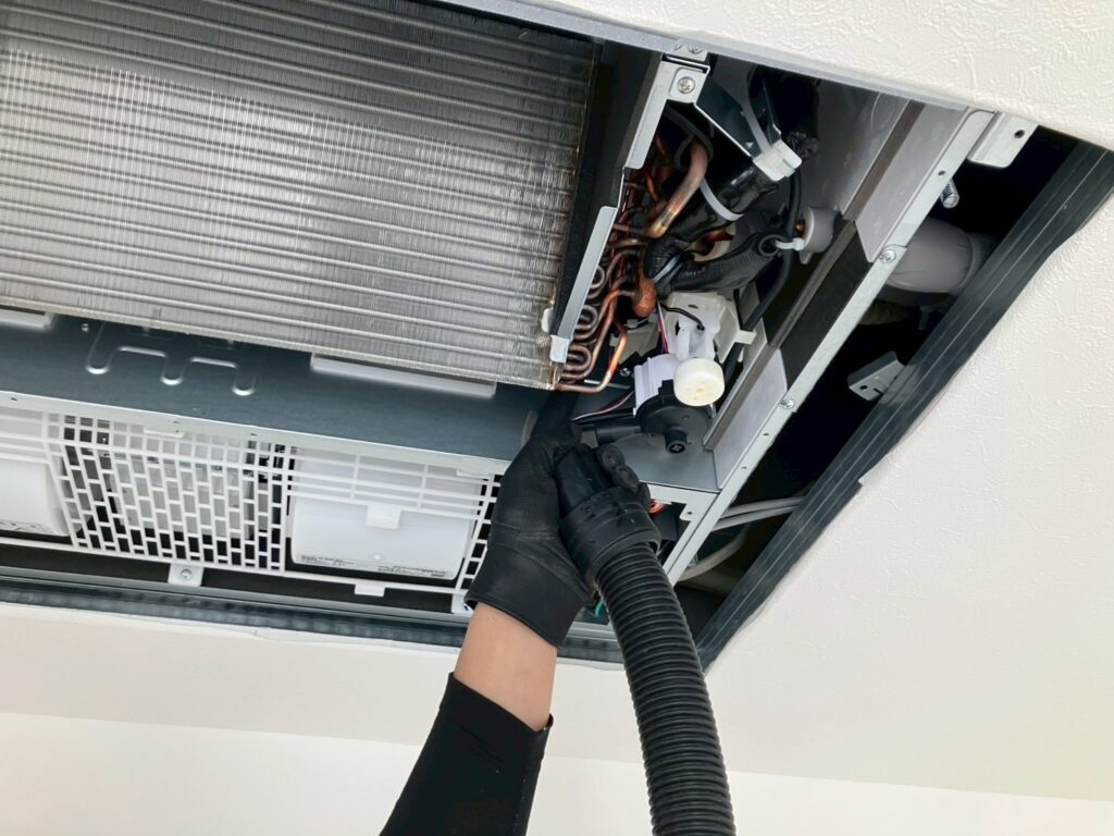 入居者様退去により、業務用室内機4台の洗浄作業、5台のバキューム清掃作業を行いました!